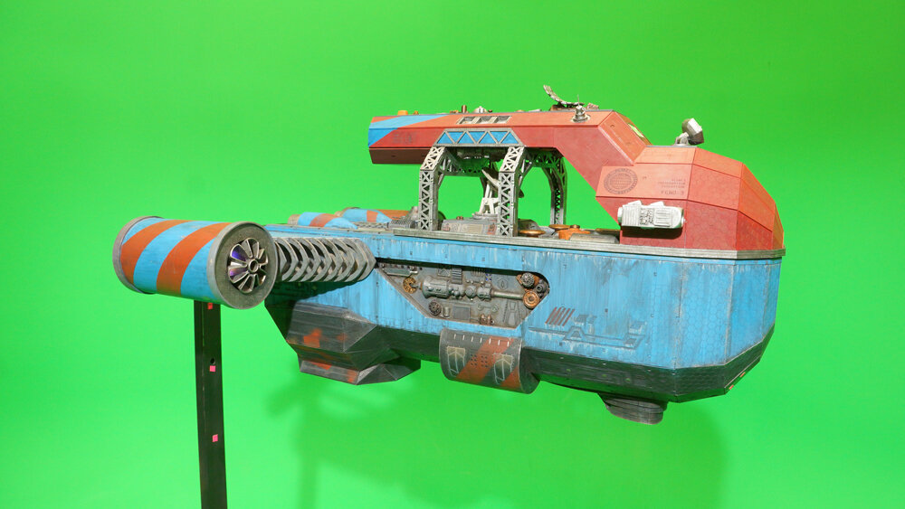 The designs were translated into rhino and a variety of techniques were used in the construction of the model; laser-cutting, laser-etching, kitbashing, molding, 3D-printing, weathering, and scenic painting.
